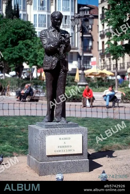 Garcia Lorca, Federico ; poète et dramaturge espagnol ; Fuentevaqueros, Grenade 5.6.1898-Viznar, Grenade 19.8.1936 (fusillé). Statue de Federico Garcia Lorca à Madrid (Espagne).
