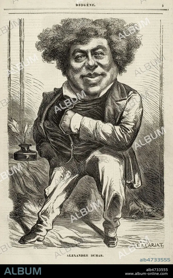 Légende: Alexandre DUMAS Pere (1802-1870). Caricature par Etienne CARJAT (1828-1906) pour Diogene du 17 aout 1856. Credit : Coll. Dixmier/KHARBINE-TAPABOR.