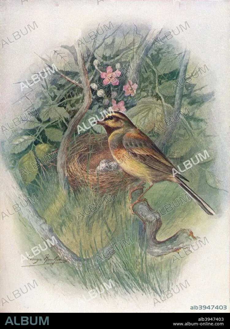'Cirl-Bunting - Emberi'za cirl'us', c1910, (1910). From Britain's Birds and Their Nests, by A. Landsborough Thomson. [The Waverley Book Company, Limited, W. & R. Chambers, Limited, London & Edinburgh, 1910]