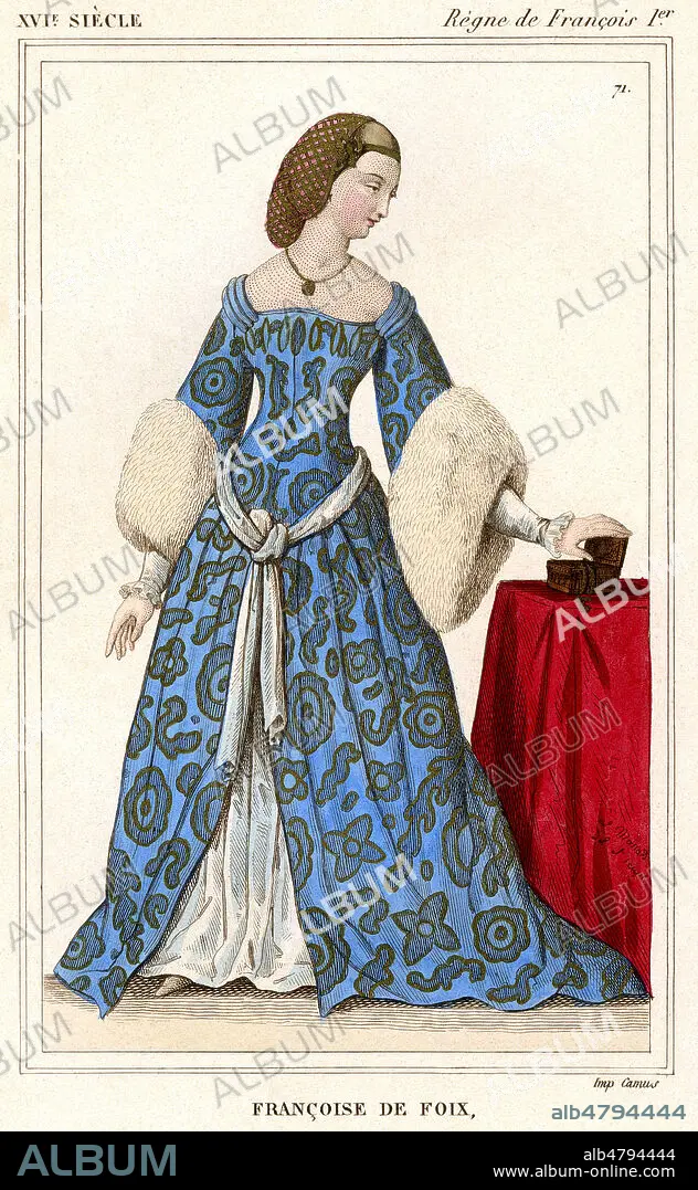 Francoise de FOIX (c.1495-1537) Comtesse de CHATEAUBRIANT et amante de FRANCOIS 1er (1494-1547). Illustration de 1852 par L. MASSARD pour Costumes historiques de la France. Credit : Collection Jonas/Kharbine-Tapabor.