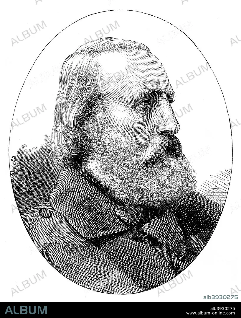 Giuseppe Garibaldi (1807-1882), Italian patriot. Portrait of General Garibaldi, soldier of the Risorgimento. Illustration from The Life & Times of Queen Victoria, by Robert Wilson, Vol III.