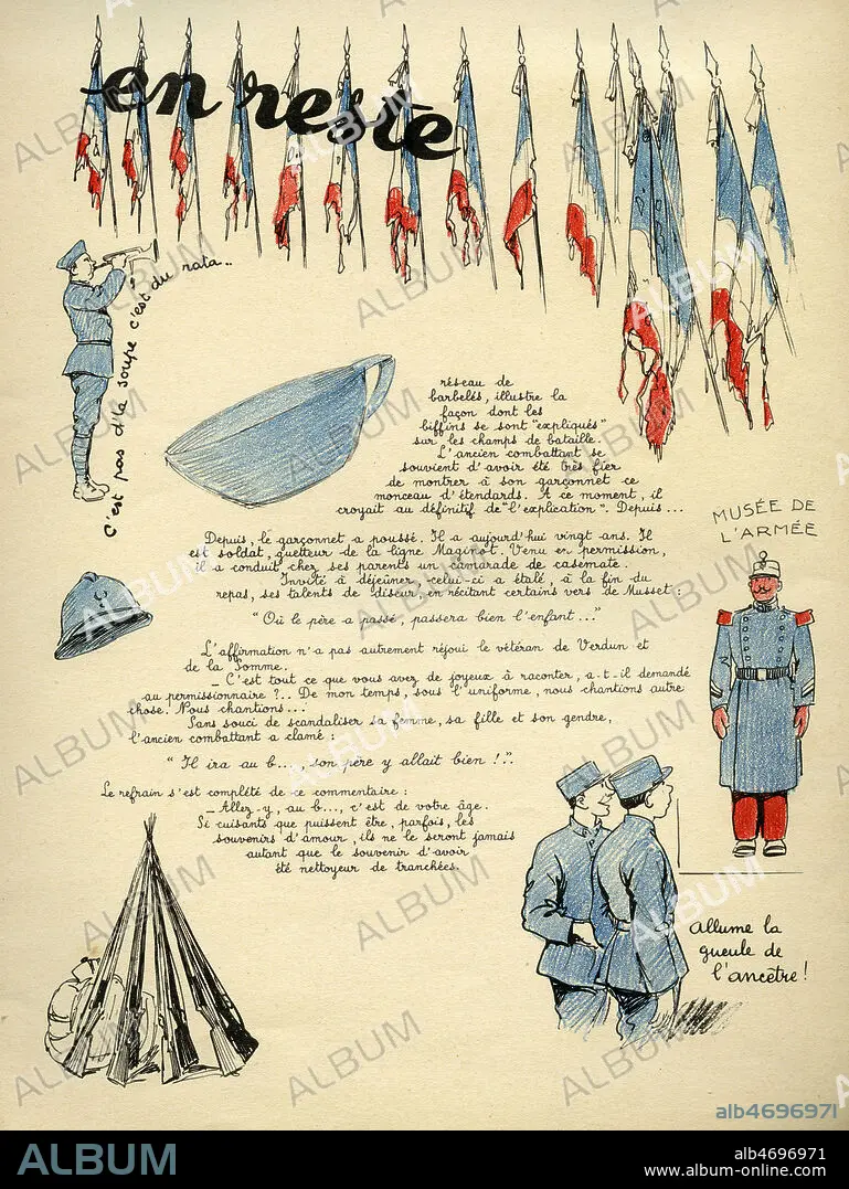 C'est pas d'la soupe c'est du rata. Caricature de 1936 par Andre GALLAND (1886-1965) pour 1914-1936 Ce qu'il en reste par Louis COMBALUZIER (19-20 s.). Edite par Les Oeuvres Francaises. Credit : Collection Jonas/Kharbine-Tapabor.