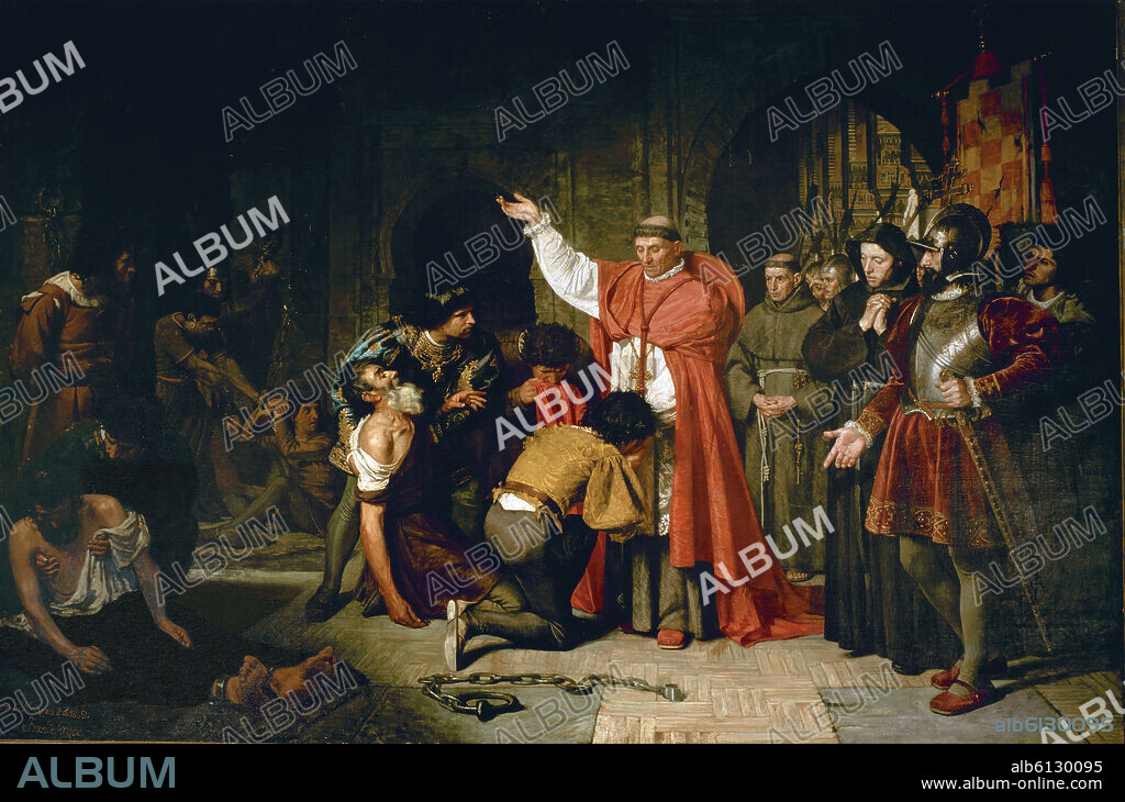 FRANCISCO JOVER CASANOVA (1836-1890). EL CARDENAL CISNEROS LIBERANDO A LOS CAUTIVOS DE ORAN - 1869 - L 2,87 x 4,35 - Nº INVENTARIO 14 - RESTAURADA