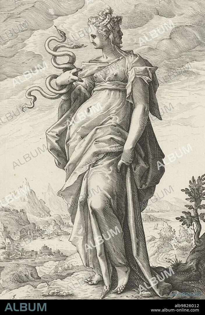 Caution, Prudentia, Goddess for Prudence and Wisdom, 1595, Historic, digitally restored reproduction from a prehistoric original