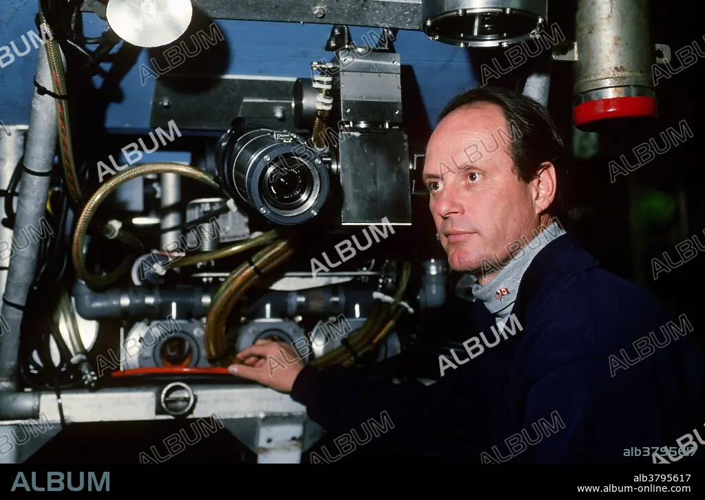 Dr. Robert Ballard next to a submersible at Woods Hole Oceanographic Institution, Massachusetts. Ballard is famous for the discoveries of the wrecks of the RMS Titanic in 1985, the battleship Bismarck in 1989, and the wreck of the aircraft carrier USS Yorktown in 1998.
