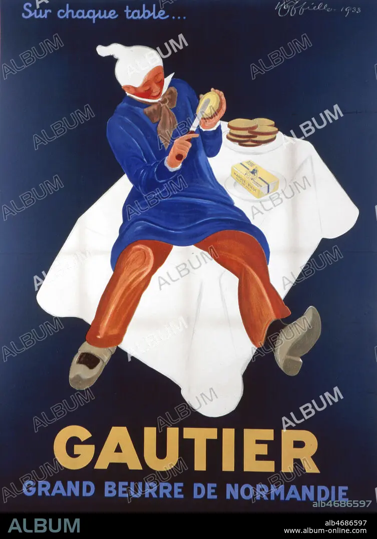 Légende: 'Sur chaque table... Gautier : grand beurre de Normandie'. Affiche publicitaire de 1933 illustree par CAPPIELLO (1875-1942). Credit : Coll. Perrin/KHARBINE-TAPABOR.