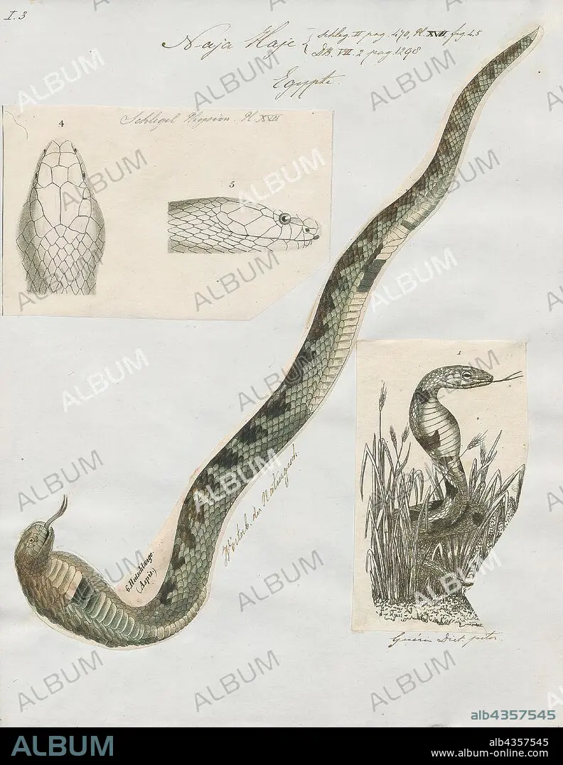 Naja haje, Print, The Egyptian cobra (Naja haje) is a species of venomous snake in the family Elapidae. Naja haje is one of the largest cobra species native to Africa, second to the forest cobra (Naja melanoleuca)., 1700-1880