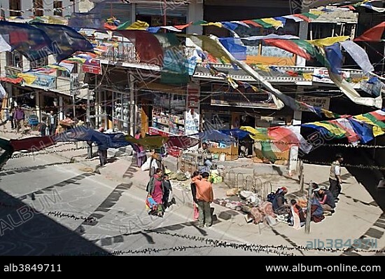 Streetscape in the bazar area of Leh, Ladakh, Jammu and Kashmir, India, Asia