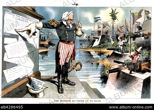 Titre: Satirical cartoon in 'Judge': The Monroe doctrine applied to Latin America under certain conditions