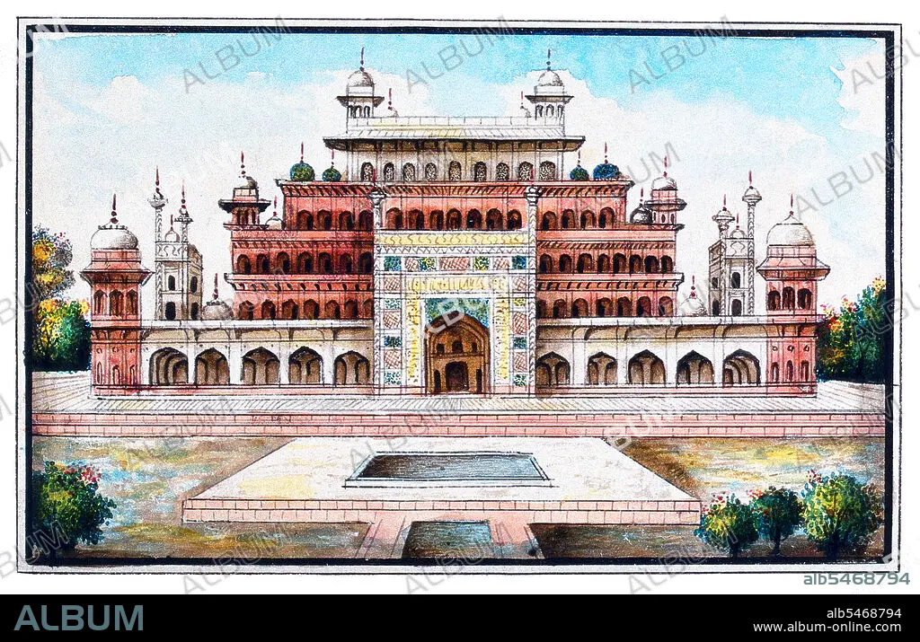 The Tomb of the the third Mughal Emperor Akbar (r. 1556-1605) is an important Mughal architectural masterpiece, built 1605-1613 and set in 48 Ha (119 acres) of grounds in Sikandra, a suburb of Agra, Uttar Pradesh, India. Emperor Akbar himself commenced its construction around 1600, according to Central Asian tradition to commence the construction of one's tomb during one's lifetime. Akbar himself planned his own tomb and selected a suitable site for it, after his death, Akbar's son Jahangir completed the construction in 1605-1613. The south gate is the largest, with four white marble chhatri-topped minarets which are similar to (and pre-date) those of the Taj Mahal, and is the normal point of entry to the tomb. The tomb itself is surrounded by a walled enclosure 105 m square. The tomb building is a four-tiered pyramid, surmounted by a marble pavilion containing the false tomb. The true tomb, as in other Mughal mausoleums, is in the basement. The buildings are constructed mainly from a deep red sandstone, enriched with features in white marble. Decorated inlaid panels of these materials and a black slate adorn the tomb and the main gatehouse. Panel designs are geometric, floral and calligraphic, and prefigure the more complex and subtle designs later incorporated in Itmad-ud-Daulah's Tomb.