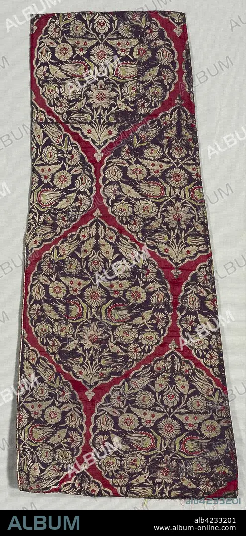 Brocaded silk with foliate medallions from a kaftan, 1525-1575. Turkey, Istanbul, Ottoman period. Lampas: silk and silver-metal thread; overall: 104.7 x 48.3 cm (41 1/4 x 19 in.).