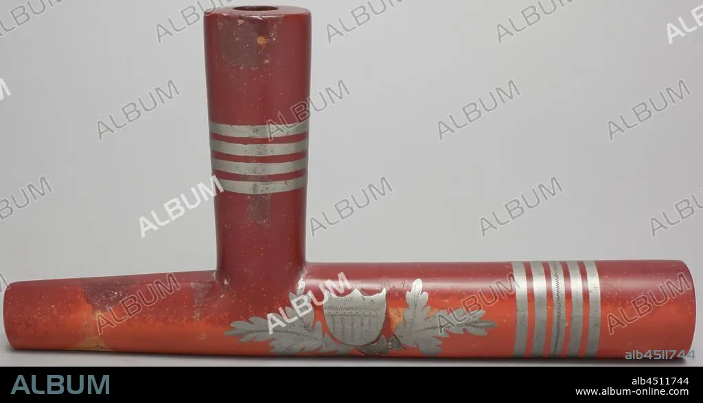 Eastern Sioux, Native American, Pipe Bowl, ca. 1890, catlinite with lead inlay, Overall: 4 1/4 × 8 3/8 × 1 1/8 inches (10.8 × 21.3 × 2.9 cm).
