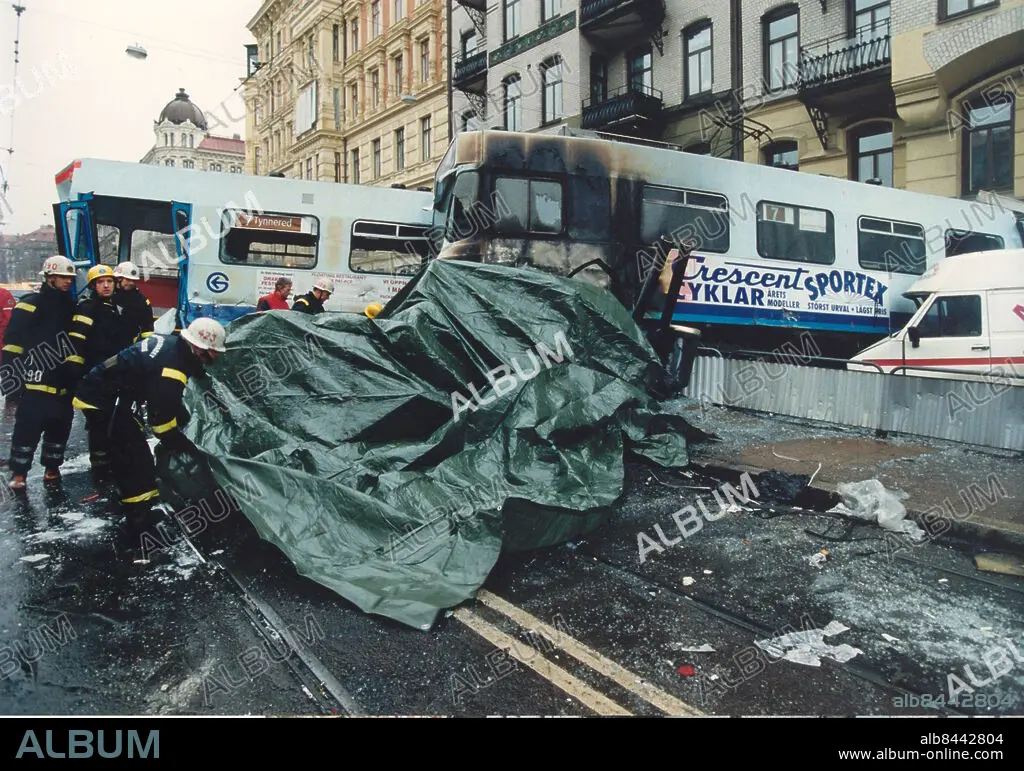 Göteborg 1992-03-12. Spårvagnsolycka på Aschebergsgatan - Vasaplatsen *** Local Caption *** GP inscannd från kopia. MAGNUS SUNDBERG.