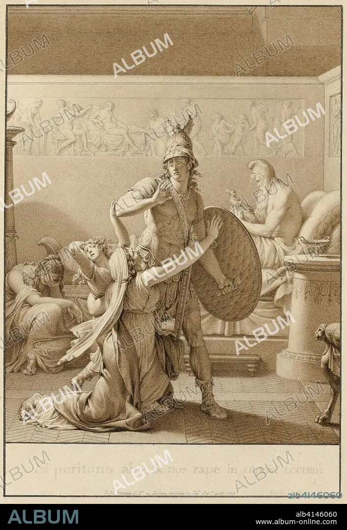 THE YOUNGER JEAN MICHEL MOREAU. Creusa Pleads with Aeneas as He Leaves for War. Jean Michel Moreau; French, 1741-1814. Date: 1803. Dimensions: 226 × 155 mm (image); 322 × 231 mm (sheet). Pen and brown ink, brush and brown wash, on cream wove paper. Origin: France.