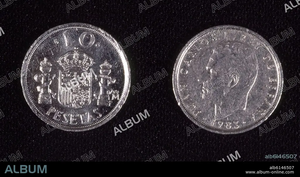 ANVERSO Y REVERSO DE UNA MONEDA DE DIEZ PESETAS