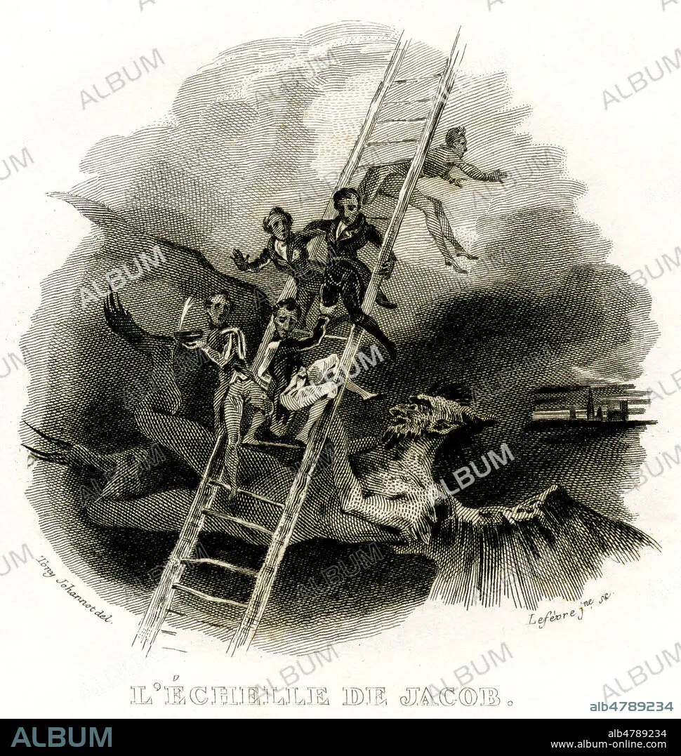 L'echelle de Jacob. Illustration de 1834 par Tony JOHANNOT (1803-1852) pour une chanson tiree des Oeuvres completes de BERANGER (1780-1857). Credit : Collection Jonas/Kharbine-Tapabor.