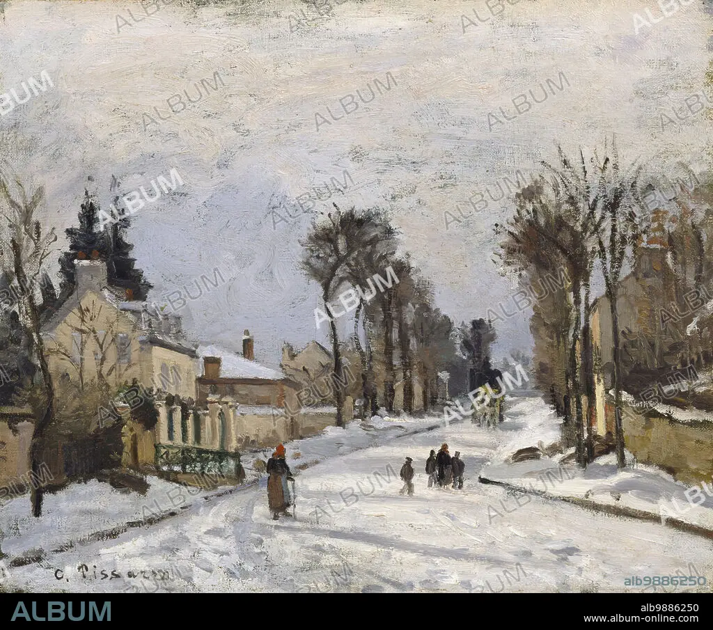 CAMILLE PISSARRO (1830-1903). Route to Versailles, Louveciennes, 1869. In 1869, Pissarro settled in Louveciennes, a suburban village northwest of Paris frequented by the Impressionists. Pissarro often painted his own house and studio, which were situated on the north side of the village on the road to Versailles, in varying seasons and climatic conditions.