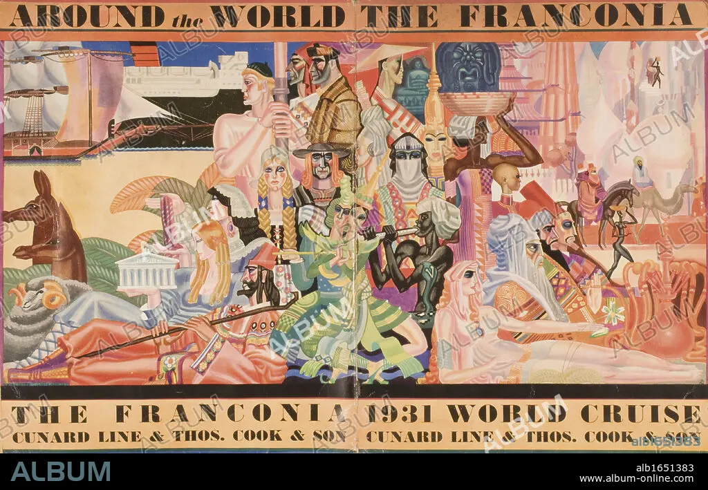 Cunard Line promotional brochure for the "Franconia" 1931 world cruise. Front and back covers.
