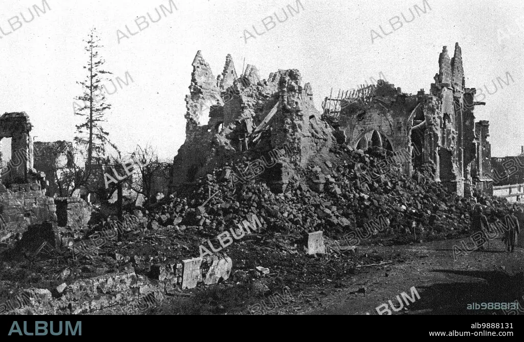 'En territoire libere; l'eglise de Lassigny', 1917. From "L'Album de la Guerre 1914-1919, Volume 1" [L'Illustration, Paris, 1924].