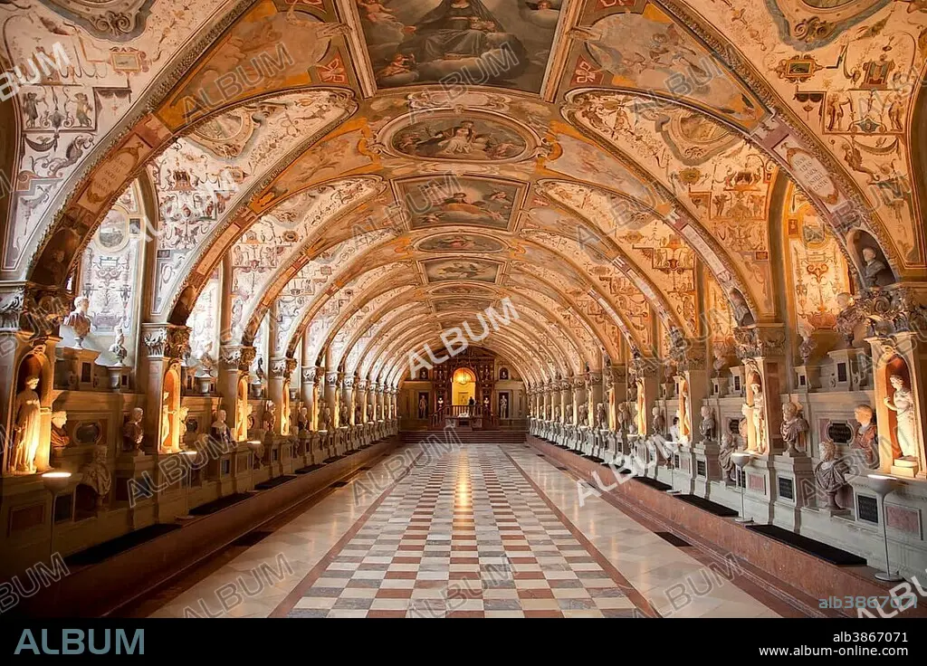 Statues in the Renaissance Antiquarium or Hall of Antiquities in the Munich Residence, Munich, Upper Bavaria, Bavaria, Germany