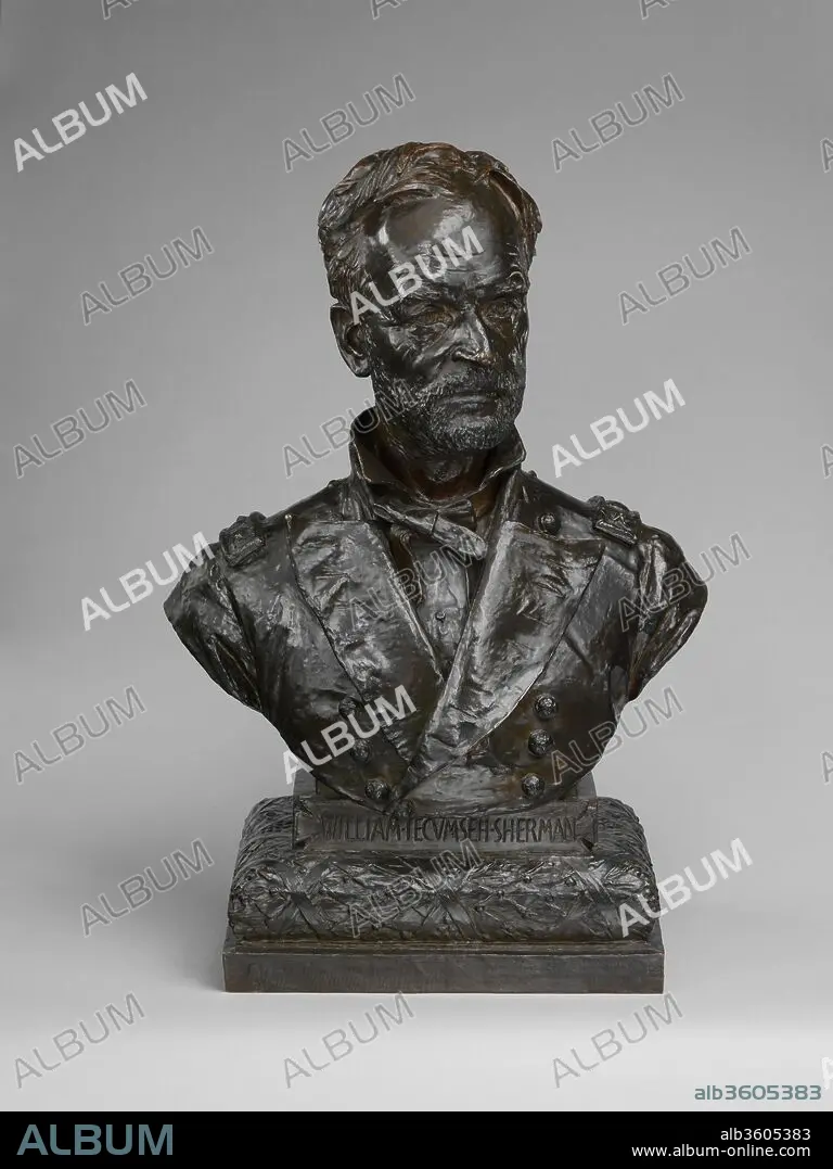 General William Tecumseh Sherman. Artist: Augustus Saint-Gaudens (American, Dublin 1848-1907 Cornish, New Hampshire). Dimensions: 31 1/4 x 21 1/2 x 12 1/2 in., 104lb. (79.4 x 54.6 x 31.8 cm). Date: 1888, cast 1910. According to Saint-Gaudens, this bust of Civil War hero General William Tecumseh Sherman (1830-1891) was modeled during eighteen visits, each lasting about two hours. The sculptor depicted Sherman exactly as he appeared during the sittings--with his deeply creased brow, stubbly beard, and unbuttoned collar. The success of this portrait left Saint-Gaudens well poised to win a commission in 1892 for an equestrian monument honoring Sherman. The sculptor used the plaster version of this bust as the basis for Sherman's portrait on the monument.