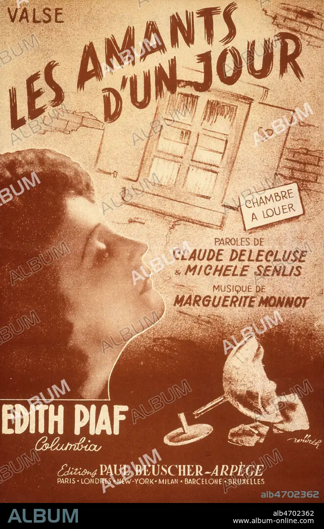 Légende: 'Les amants d'un jour' : chanson interpretee par Edith PIAF (1915-1963). Couverture de partition de 1956. Credit : Collection KHARBINE-TAPABOR.