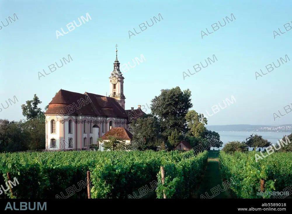 Birnau sur le lac de Constance (Bade-Wurtemberg, Allemagne), église de pélerinage Sainte-Marie (constr. 1747-49 ; arch. : Peter Thumb). Vue extérieure depuis le nord-est. (Florian Monheim).