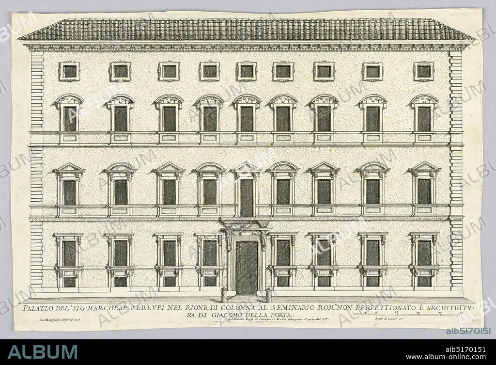 Palace of the Marchese Serlupi, Giovanni Battista Falda, Italian, 1643 - 1678, Giacomo della Porta, Italian, 1532 - 1604, Line and stipple engraving on paper, Europe, 17th century, Print, Print
