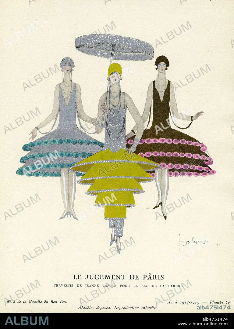 Le Jugement de Paris, travestis de Jeanne LANVIN pour le Bal de la Parure, 1924 , 1925. Gravure de mode in La Gazette du Bon Ton, annees 20, 20eme siecle. Illustration Georges LEPAPE (1887-1971) ADAGP. Credit COllection IM/KHARBINE TAPABOR
