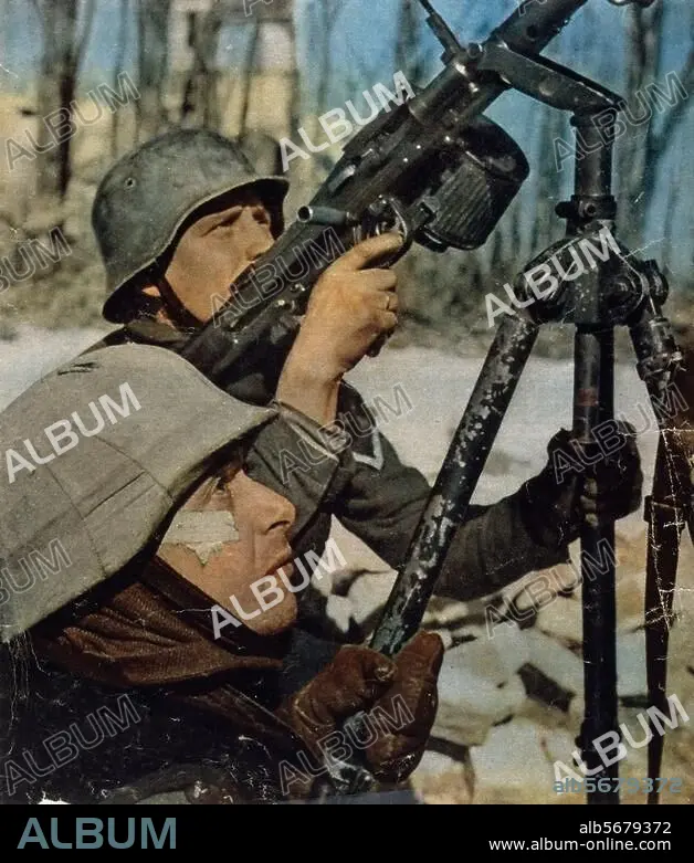 Military / Weapons:. arms. German army soldiers with a heavy machine gun (World War II). Photo, title page "Die Wehrmacht", edition A, 6th year, from 6th June 1942.