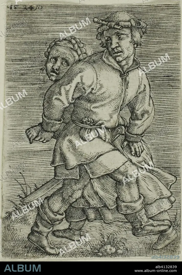 Peasant Couple Dancing. Barthel Beham; German, 1502-1540. Date: 1524. Dimensions: 56 x 39 mm (image/plate/sheet). Engraving in black on ivory laid paper. Origin: Germany.