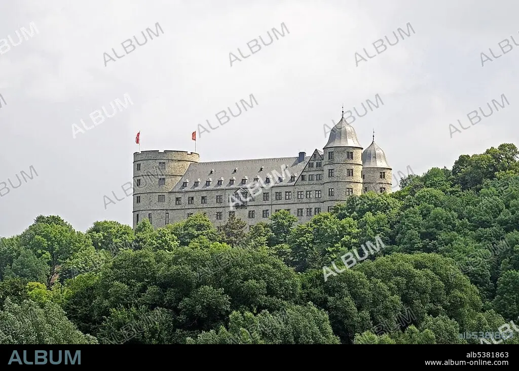Overview, landscape, Wewelsburg, triangular castle, former Nazi cult and terror center of the SS, today historical museum, hostel, Bueren, Paderborn, North Rhine-Westphalia, Germany, Europe
