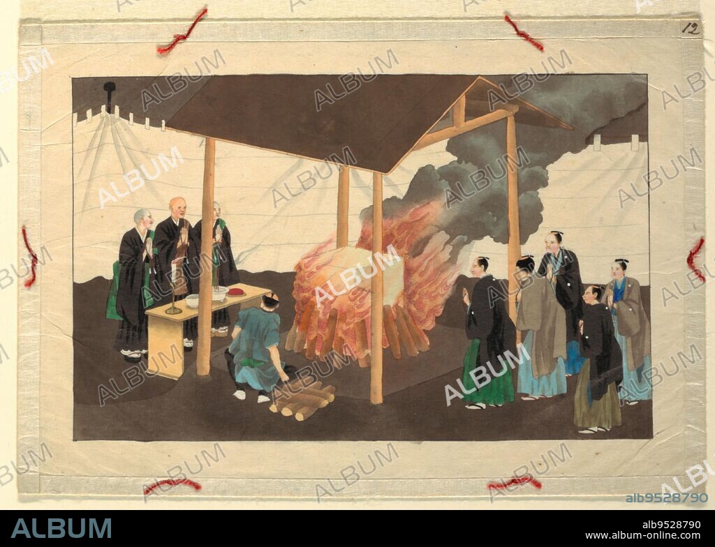 From a series of sixteen scenes of the death and burial of a man in Japan. Date: 19th century. Japan watercolor on silk or paper.