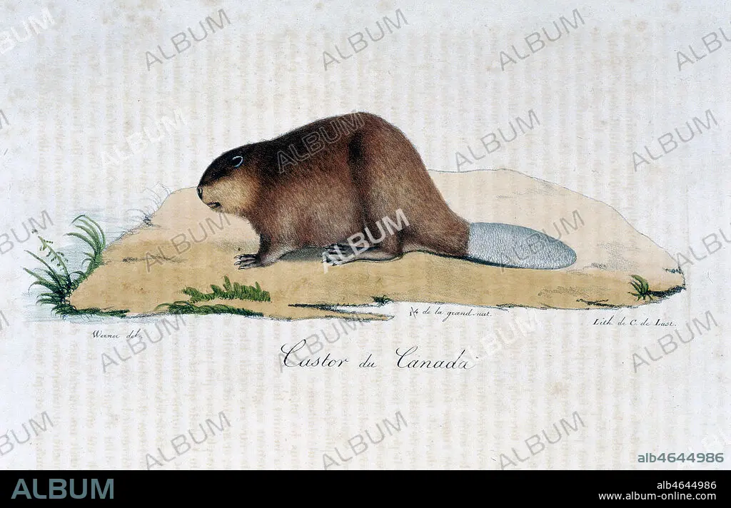 Légende: Planche zoologique : Castor du Canada . Gravure de WERNER in Histoire naturelle des mammifères, par Etienne Geoffroy SAINT-HILAIRE et Frédéric CUVIER en 1824. Collection Mx/Kharbine-Tapabor