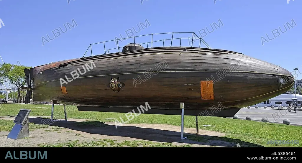 Replica of the Ictineo II, the world's first submarine, inspiration for the Nautilus, Port Vell, Barcelona, Catalonia, Spain, Europe