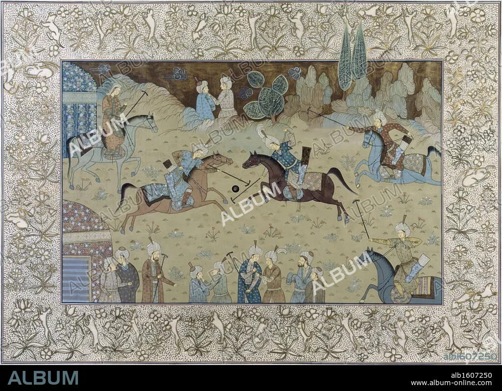 INDIAN ART. Royal Indian Court Polo Scenes (Jaipur Rajasthan Desert, India) Artist Unknown (Indian) Watercolor on silk Chisholm Gallery, West Palm Beach, Florida.