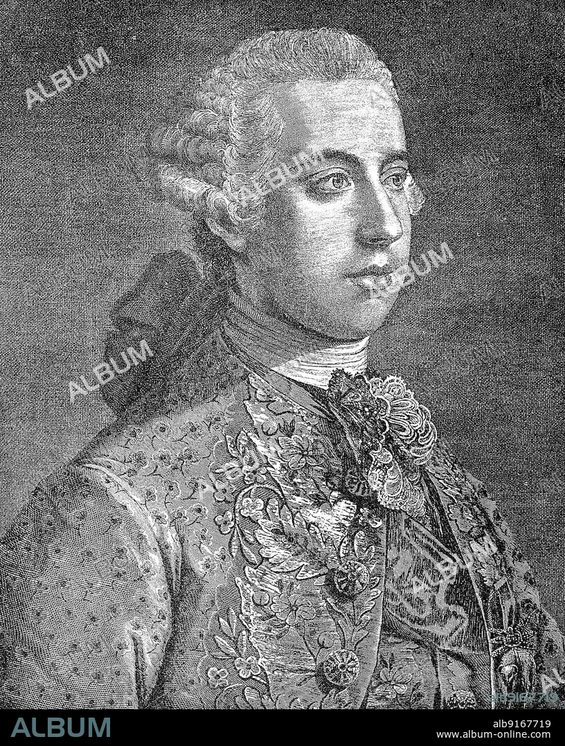 Joseph II Benedict August Johann Anton Michael Adam (born 13 March 1741) (died 20 February 1790), was a prince of the Habsburg-Lorraine dynasty, Archduke in the Archduchy of Austria, became Roman-German King in 1764 and was Holy Roman Emperor from 1765 to 1790, Historic, digitally restored reproduction of a 19th century original, exact original date unknown
