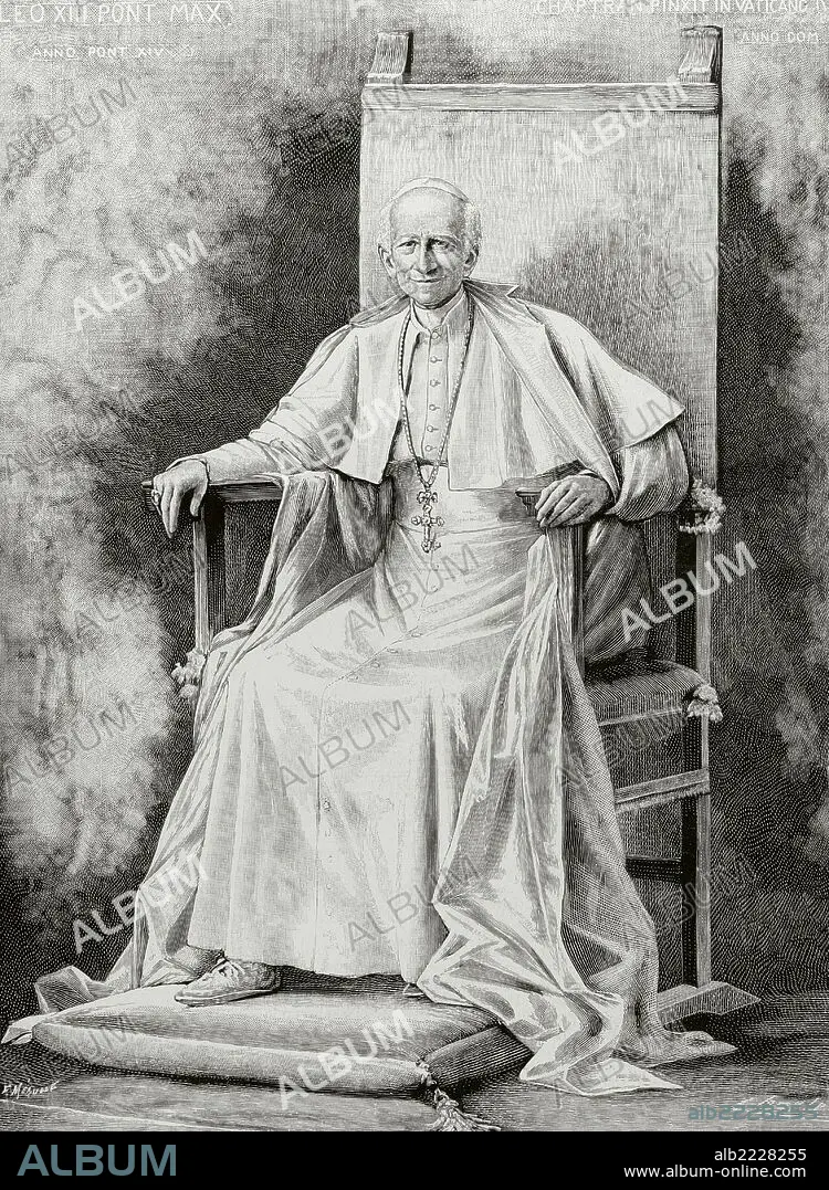 Leo XIII (1810-1903). Italian Pope (1878-1903), named Vincenzo Gioacchino Pecci. Engraving in The Spanish and American Illustration, 1892.