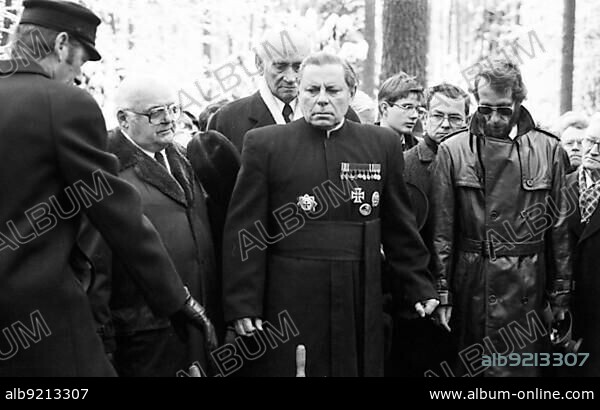 The funeral of Grand Admiral Karl Doenitz, a Hitler confidant who was convicted as a war criminal by the Nuremberg court martial, turned into a manifestation of Knight's Cross bearers, old and new Nazis. Aumuehle near Hamburg, 06.01.1981, Germany, Europe