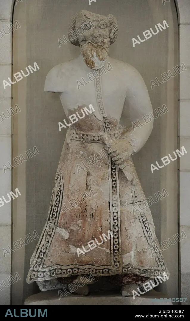 Hisham's Palace. 8th century AD. Khirbat al-Mafjar, near Jericho. Was built by Waild Ibn Yazid in 734 AD, during the reign of Caliph Hisham Ibn Abdelmalik (724-743 AD). Human figure sculpture. Stucco. Rockefeller Archaeological Museum. Jerusalem. Israel.
