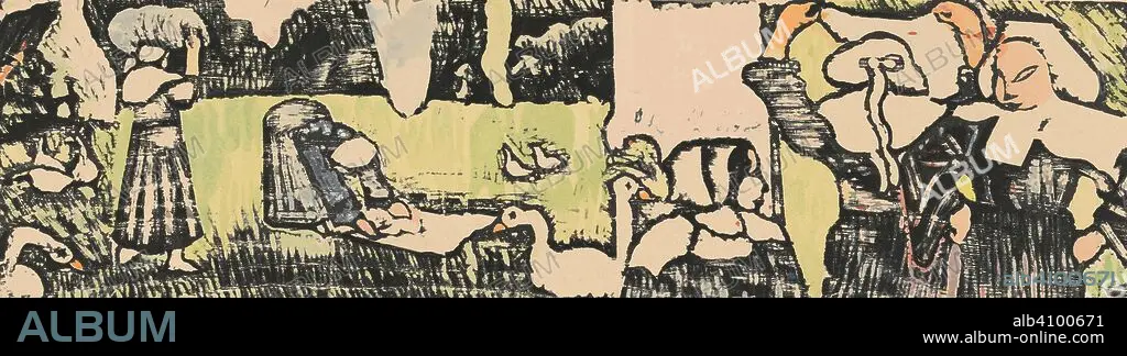 EMILE BERNARD. Laundry (La lessive). Dimensions: 28 cm x 45.6 cm, 10.7 cm x 39.3 cm.