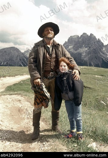 Tchéky Karyo with his daughter Liv, on the set of the film 'L'Ours' (The Bear) directed by Jean-Jacques Annaud in 1988.. . Shooting picture in the Dolomites, Italy. Production company: Price, Renn Productions