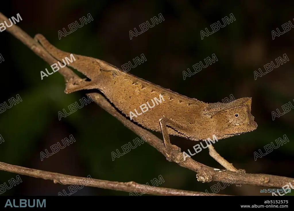 Marojejy leaf chameleon (Brookesia griveaudi) in the rainforest of Marojejy National Park, northeast of Madagascar, Madagascar, Africa.