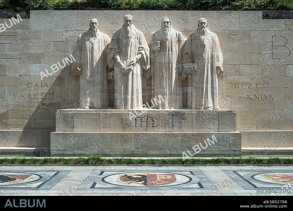 The reformers Farel, Calvin, Beza and Knox (from left to right), sculptures at the International Monument of the Reformation, 1909-1917, sculptor Paul Landowski, Geneva, Switzerland, Europe