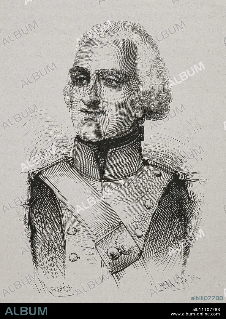 Théophile Corret de la Tour d'Auvergne (1743-1800). French military. Drawing by H. Rousseau. Portrait. Engraving. "History of the French Revolution". Volume I, 2nd part, 1879.
