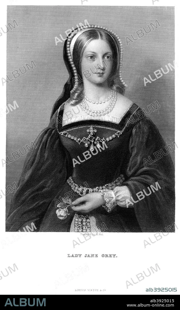 Lady Jane Grey (1537-1554), 19th century. A grand-niece of Henry VIII of England, Jane reigned as uncrowned Queen of England for nine days in July 1553. Though Jane's accession to the throne may have breached the laws of England, many powers of the land proved willing to accept her as Queen, even if only as part of a power struggle to stop Henry's eldest daughter, Princess Mary, a Roman Catholic, from ascending to the throne. Jane's brief rule ended, however, when the authorities revoked her proclamation as Queen. Mary's subsequent régime eventually had her executed for treason. Lady Jane had a reputation as one of the most learned women of her day, and the historical writer Alison Weir describes her as one of the finest female minds of the century.