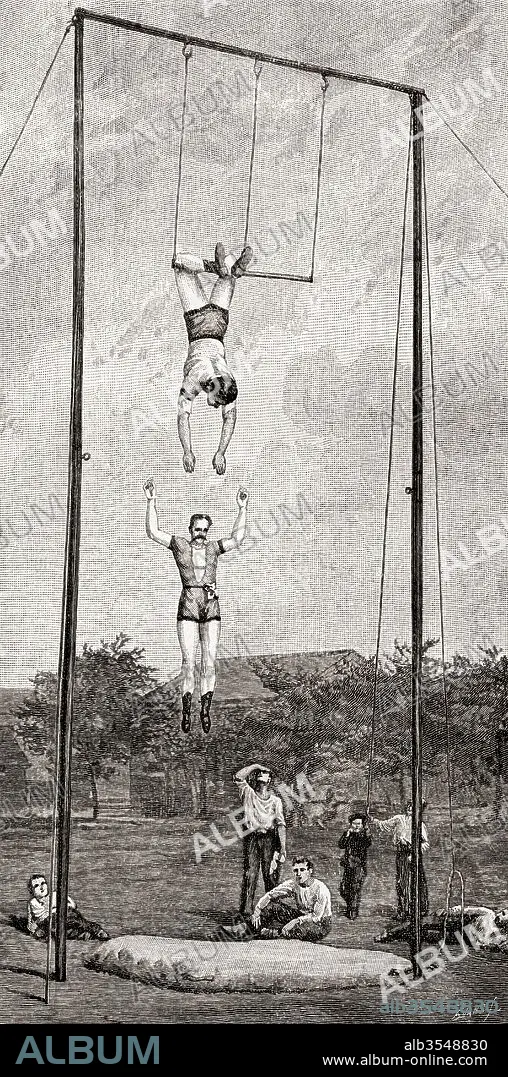 Trapeze artists in the 19th century. From The Century Magazine, published 1887.