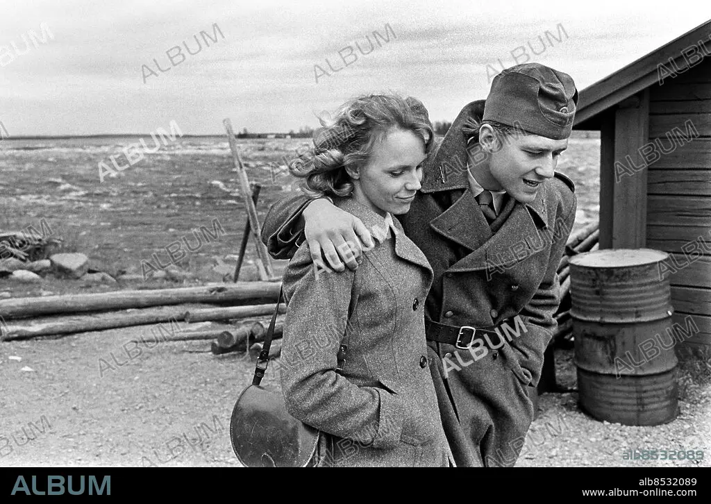 1973-05-27.. Inspelning av NÅGONSTANS I SVERIGE. TV-serie av Jan Olof Olsson i regi av Bengt Lagerkvist.. Sänt första gången 1973-12-25.. Här ses skådespelarna Hans Klinga, som stabsfuriren Hansson, och Anna Sällström, som Sonja.. Foto: Bo-Aje Mellin / RiR / SVT / Kod: 5600. Bild och reportage publ. i RiR 31/73 sid. 10-11.. RiR 20871 sv/v neg . Handen i fickan