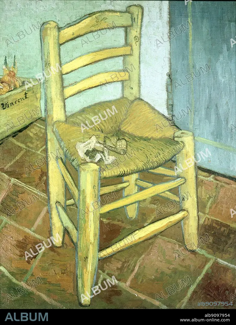 Titre: Vincent's Chair and his Pipe - Arles, December 1888. by Van Gogh. Tate Gallery. The two paintings of Vincent's and Paul Gauguin's chairs are among the most often analyzed of Van Gogh's works. In addition to the symbolic undercurrents of the work, these two paintings are also unique in terms of the way in which they're displayed together--whether at the rare exhibits in which they have been shown together (London, 1968, for example) or simply side by side in a book. Generally, if Gauguin's chair is displayed on the left, then the chairs seem to be facing away from each other--clearly symbolizing the often conflicting natures of Van Gogh and Gauguin. This is generally how the works are shown, given the volatile relationship between the two painters. If the paintings are displayed as facing each other, a different interpretation is suggested--that of a mutual respect between the artists; a grudging, but sincere admiration in spite of the unfortunate outcome of their relationship in "the Yellow House" in Arles. . ©2006 TopFoto