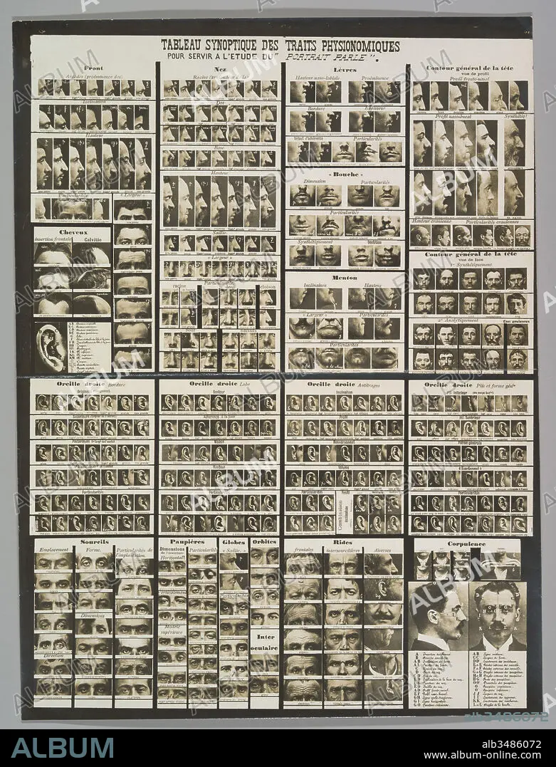 Tableau synoptic des traits physionomiques: pour servir a l'étude du 'portrait parlé', ca. 1909, Gelatin silver print, Image: 39.4 x 29.5 cm (15 1/2 x 11 5/8 in.), Photographs, Alphonse Bertillon (French, 1853–1914), Nineteenth-century police headquarters were host to disorganized 'rogues’ galleries' swollen with photographic portraits of criminals, which turned even the simplest of searches into a Sisyphean labor
